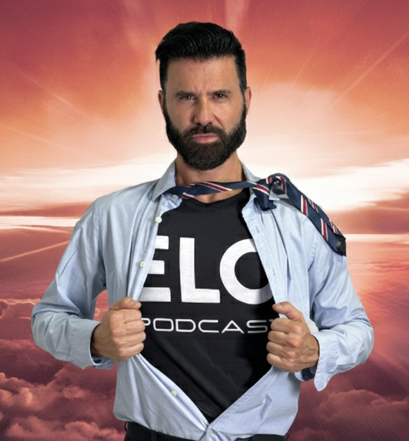Acá arriba pueden ver una foto mía, con traje y corbata, la misma que usaba en mi vieja página de abogado. Esa es mi foto de Clark Kent: el tipo correcto, el profesional impecable, el que hacía todo “bien”. Pero por dentro yo sabía que había algo más. Porque hoy, años después, ya no soy ese Clark Kent… hoy soy mi propio Superman: soy Elo Podcast.